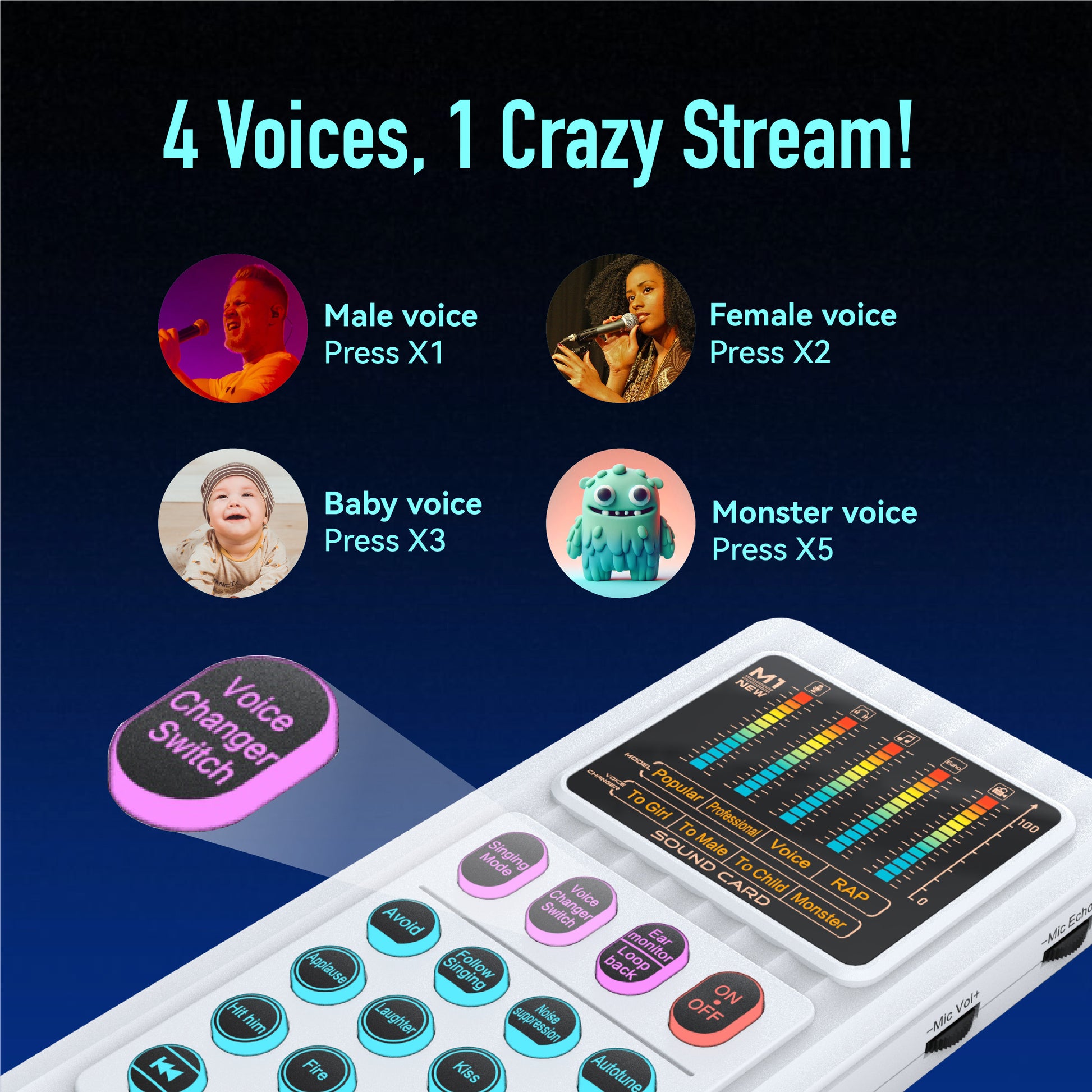 Suitable for a wide range of applications, from gaming to live streaming. The HiCall M01 offers flexibility with its 6 voice-changing effects. Whether you're recording a podcast, streaming on Twitch, or creating a travel vlog, this sound card delivers reliable audio performance. Enjoy clear sound wherever you go!